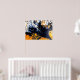 Póster Pintura acrílica dorada, azul y blanca Resumen de
