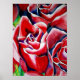 con el diseño original de arte de acuarela de Sacha Grossel de múltiples flores rosadas, focalizadas, macro rosas. Este grupo de rosas floridos es luminoso, colorido, con luces azules y violetas y atraería a los amantes del diseño botánico por todas partes.