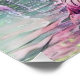 Pintado acuático de flamencos rosas en la pintura acuática de agua de hermosos flamencos rosas en el agua en una hermosa isla tropical colorida. En este cuadro acuático predominan los tonos pastel claros, el blanco y el rosa, el azul, el verde y el amarillo.