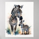 Póster Pintura al Acuarela de una Mamá y una Cebra Bebé 5