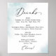 Este letrero de menú de bebidas de boda azul con efecto de pintura al agua es perfecto para una boda moderna. El diseño simple y clásico presenta un toque de color azul pastel claro con estilo elegante minimalista.