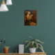 Este poster presenta la exquisita pintura al óleo, "Joyas" de Thomas Edwin Mostyn. Capta un momento romántico y etéreo con una elegante mujer pelirroja adornada con ricas prendas de color ámbar. La obra de arte, probablemente de finales del siglo XIX o principios del XX, muestra el tema en perfil, con los ojos cerrados y las manos delicadamente sosteniendo hilos de joyas brillantes. Su vestido de tonos dorados, adornado con motivos intrincados, desprende elegancia y encanto del viejo mundo. El fondo es una mezcla exuberante e impresionista de tonos florales profundos, con rosas y follaje creando una atmósfera de ensueño, casi mística. La iluminación suave y difusa realza el ambiente cálido e íntimo del cuadro, destacando la textura de las pinceladas y la belleza resplandeciente de las joyas. Esta pintura refleja elementos de arte pre-raphaelita y simbolista, caracterizados por su romanticismo, su rica paleta de colores y su atención a la belleza femenina. El artículo transmite temas de lujo, introspección y elegancia atemporal.