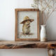 Esta encantadora obra de arte captura la esencia del encanto rural con un dulce jerbo que luce un sombrero de paja tejida. Los tonos suaves y neutros, y las pinceladas detalladas crean una sensación cálida y acogedora, lo que la convierte en una pieza perfecta para agregar un toque de fantasía rústica a cualquier habitación. Ya sea que esté decorando una guardería, sala de estar o estudio, esta pieza seguramente traerá una sonrisa a su rostro.