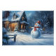 Un agradable, colorido cuadro de invierno de un muñeco de nieve fuera de una casa.
