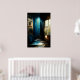 Esta es una pintura de una habitación con fotos sentimentales en la pared y tapices azules y dorados resaltados por la luz del sol que entra por la ventana. Inspirado por la interpretación de Oscar Peterson del clásico "Azul y Sentimental: por el conde Basie. Los golpes de pintura que fluyen complementan el tono de la canción. Gran poster para cualquier club de jazz en el sótano, cueva masculina o cobertizo. Una idea creativa de regalo para el amante del jazz o del blues en tu vida.