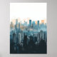 Pintura minimalista con vista Urbanscape con cielo blanco como fondo. Una alineación de silueta de construcción como objeto principal seguido de otra silueta en la parte posterior, y usando un color blanco como fondo para darle un toque minimalista. Traiga a su habitación un moderno ambiente urbano con este minimalista poster paisajístico.
