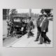 Vieja foto de un hombre tomando fotos de James R. Mann, representante de Illinois con la senadora Penrose. Cámara antigua y auto, 1914.