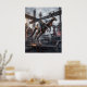 Dynamic and energetic, this piston-powered kangaroo design shows a mechanical marsupial mid-leap with reinforced steel plating, hydraulic hind legs, exposed pistons, glowing eyes, and a mesh-metal pouch. Bounding across a vast pipeline network of tanks, valves, catwalks, steam vents, and drifting sparks, the scene bursts with motion and industrial power. Perfect for gyms, offices, studios, and modern interiors. A bold choice for fans of engineering art, Australian wildlife, and futuristic mechanical animals.