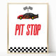 Póster Pit Stop Red Flame Race Car Fiesta de mesa Rótulo
