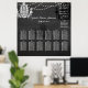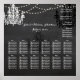 PixDezines caprichosa pizarra acentuada con candelabros negros y blancos con hilos de luces. Todo ajustable. Gráfico de asientos de boda de Alpha... utilizando material de cartel.