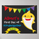 ¿Buscas un detalle extra lindo para la foto del primer día de clases de este año? Esta señal de tiburón amarillo y arcoíris es muy linda y colorida. Cuenta con un adorable tiburón amarillo, banderín en colores primarios de rojo, amarillo, naranja, verde y azul. Se puede personalizar con cualquier nombre y grado.