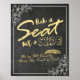 Plantillas de cartel / señal de boda moderna / elija un asiento, no un lado de carteles - elegante escritura dorada y marco floral blanco en fondo de pizarra negra de Grunge.