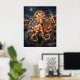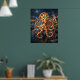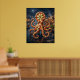Arte dramático de pulpo de pizza que presenta una gran criatura marina formada a partir de texturas de corteza burbujeante, mozzarella derretida, gradientes de salsa de tomate, acentos de albahaca, detalles de aceituna y bordes carbonizados artesanales. Elevándose desde las oscuras aguas del puerto junto a barcos pesqueros, muelles de piedra, hornos brillantes, cajas de hierbas, lámparas colgantes y reflejos iluminados por la luna, este diseño de fantasía teatral se siente rico y lujoso. Perfecto para pizzerías, cocinas, restaurantes, salas de juegos o coleccionistas de arte de animales comestibles audaces.