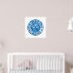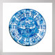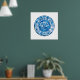 Impresión de un plato de porcelana chino antiguo, en tonos cobálticos y azul índigo profundo con blanco, en un borde de ocho vías ornamentado, alrededor de un jarrón de flores - realzado digitalmente y ajustado al color