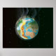 Planeta Tierra Placas Tectónicas. Planeta Tierra personalizado con placas tectónicas en llamas liberando hollín a la atmósfera.