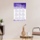 poster del plano de la mesa de arte moderno abstracto boda púrpura. Edite esta tabla de asientos de invitados con sus propios asientos y nombres de invitados para su cena boda. Diseño y pintura original de arte lavado abstracto y moderno de Sarah Trett. www.sarahtrett.com para www.mylittleedenweddings.com