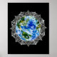 una obra de arte decorativa con el planeta tierra encima de una mandala blanca y un fondo de color negro como poster decorativo.
