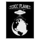 OVNI escaneando el planeta Tierra y etiquetándolo como "Planeta Tóxico". Gracioso diseño de textos y gráficos cínicos de protección ambiental.