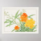 Una atractiva pintura de plantas de flores de aleta naranja y amarilla pintada por el artista japonés Tanigami Konan (1879-1928). Konan es más conocido por sus pinturas de "ave y flor" conocidas como "kacho-e". Originalmente pintado en bloques de madera. Las flores de flores de altillo tienen bonitas flores que aportan un vibrante toque de color a la cama de flores exterior. Este vintage arte floral japonés de Tanigami Konan fue pintado en 1917. Esta obra de arte es perfecta para los que practican en el "garden club" local.