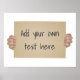 Manos con un signo de protesta de cartón en blanco - agregue su propio mensaje a este diseño de plantilla. Todo el texto se puede personalizar.