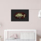 Esta imagen muestra un trofeo de pared de Bass rayado mostrando un tazón de agua dulce con una etiqueta con el nombre debajo del pez que está montado en una placa de madera.
