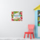 Obra de arte con una playa tropical enmarcada por flores acuáticas de hibisco rosa floral y hojas de palmeras, con la leyenda "Bienvenidos al paraíso".