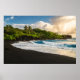 El camino a Hana es asombroso y probablemente el más popular de Maui. Una de las paradas imprescindibles en el camino es la playa de arena negra. El agua es fría, traicionera y está infestada de tiburones. El Parque Estatal Waianapanapa cuenta con una playa de arena negra sin precedentes en la isla de Maui, o en cualquier otro lugar. Está enclavado en una cala privada, los gránulos negros de tono brillan, oscuros y misteriosos — hay algo al respecto que atrae a la gente aquí. Creado hace mucho, mucho tiempo por el surf.