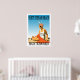 Un poster retro que nunca lo fue hasta ahora. Una recreación de un viejo poster. Escena de estilo vintage de Sveti Stefan Beach de la época Art Déco. Colores claros con una mujer en el solárium de la playa con una manta roja y una gorra de punto de polka estilo flapper. Exclusivamente por Zazzle.com/Retro_Art Store.