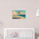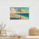 Póster Playa verde azulada y de Peach, Montaña y Paraguas
