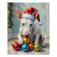 Póster Playful Bull Terrier Dog Guarding Christmas