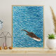 This charming wildlife illustration features a playful river otter swimming through flowing blue water, surrounded by textured wave patterns that create a calming and dynamic ocean-like movement. The artwork captures the beauty of aquatic wildlife, river animals, and peaceful nature scenes, making it a perfect choice for lovers of animal illustration, marine life art, and nature inspired decor.