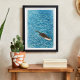 Póster Playful River Otter Swimming in Blue Water