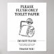 A funny and practical minimalist bathroom sign that clearly states, 'Please Flush Only Toilet Paper.' This clean black and white design features a simple toilet paper roll illustration. Perfect for home guest bathrooms, offices, or restaurants to keep the plumbing safe with a bit of humor!