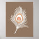 Póster Pluma de pavo real blanca y rosa en Taupe Tan