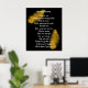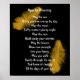 Poster Apache Blessing con 2 plumas doradas sobre fondo negro. Que el sol te traiga nueva energía de día. Que la luna le restaure suavemente por la noche. Que la lluvia elimine tus preocupaciones. Que la brisa se incline en tu ser. Que camines suavemente por el mundo y sepas que es belleza todos los días de tu vida. Un sentimiento beatificante de desear a un amigo o a un ser querido. Autor apache indio americano desconocido