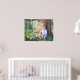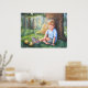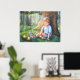 Un niño pequeño ha hecho un descubrimiento increíble -un dragón bebé recién nacido de un huevo dorado. Mientras se sienta junto a un árbol en un bosque cubierto de sol, se está desarrollando una mágica amistad. Una pintura de fantasía infantil. Póster.