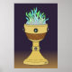 Una taza con joyas que combina un cáliz y un tazón de madera de estilo medieval, o mazer, contiene una poción mágica de fusión multicolor en este fantástico ilustracion de Richard H. Fay.