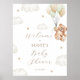 Este adorable poster recibe a los clientes con estilo en una ducha de bebé, donde hay un oso de peluche con globos. Este cartel le da un toque encantador y elegante a su celebración. Perfecto para saludar a los huéspedes y marcar el tono para un evento memorable.