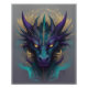 Esta pintura muestra una impresionante representación de la cabeza de un místico y feroz dragón. El dragón se representa en un estilo realista en color verde azulado, dorado y violeta y tiene un aspecto potente y feroz. La pintura tiene un sentido de misterio e intriga.
