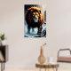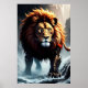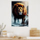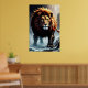 Poderosa caminata de leones sobre el agua Este producto es una impresionante impresión de lona de un poderoso león caminando sobre el agua. La imagen capta la majestuosa belleza y fuerza del león, así como el movimiento dinámico del agua. Este producto es perfecto para cualquiera que ame los tigres, la vida salvaje o la naturaleza en general.