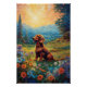 Pointillismo Dachshund Explorando Una Parada Llena De Flores Florecientes