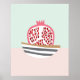 This modern and clean look of a pomegranate in a striped bowl is sure to light up any room.
