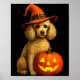Póster Poodle Halloween Pumpkin Witch Hat Dog Art Family