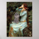 Ophelia (sentada) por John W. Waterhouse (1898), adaptada para incluir una miniatura de plata o un juguete Poodle. Waterhouse basado en esta pintura en la Ophelia de Shakespeare.