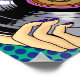 Chica de arte pop sujetando un álbum de vinilo con notas musicales a su alrededor. Arte dibujado a mano azul, verde y violeta.