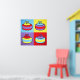 A playful celebration of color, texture, and repetition, this design presents a quartet of stylized curling stones rendered in a bold, painterly pop-art style. Each stone sits within its own vibrant color field, swapping hues and combinations to create a rhythmic visual variation that feels both cohesive and dynamic. The thick, hand-drawn outlines and visible brush-like textures give the forms a tactile, almost folk-art warmth, while the simplified shapes and high-contrast palette lend a modern, graphic punch. The result is a lively, whimsical composition that captures the spirit of curling through a lens of cheerful abstraction and expressive color.