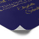 Este elegante poster o cartel invitará a los huéspedes a firmar su libro de bodas. Presenta un diseño sencillo pero elegante con textos dorados sobre un fondo azul marino y un flamante encaje de Relieve metalizado dorado en las esquinas.