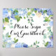 Signo del libro de visitas floral Blue Hydrangea. Invite a sus huéspedes a firmar su libro de visitas con este hermoso cartel que presenta flores azules e hidrangeas azules.