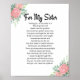 Póster Por mi hermana Poema Hermana Poster de regalos