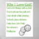 Si lo piensas, el golf es casi el juego perfecto. Golpear cosas con un club, conducir el vehículo de otra persona, y no hay refrigerios en esos camisetas rayados de cebra.